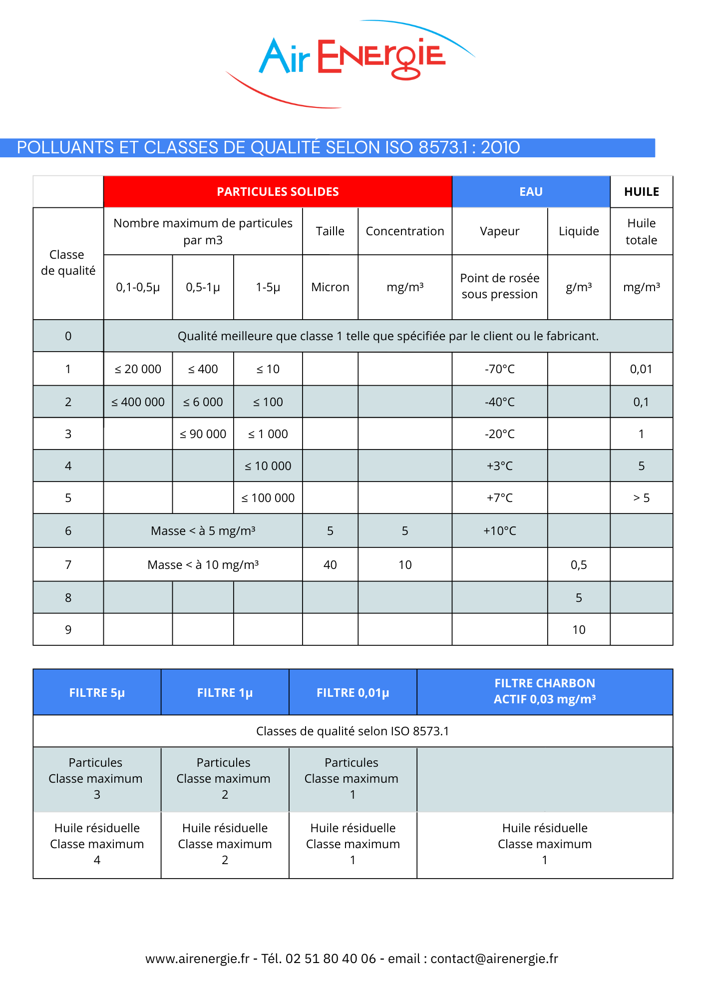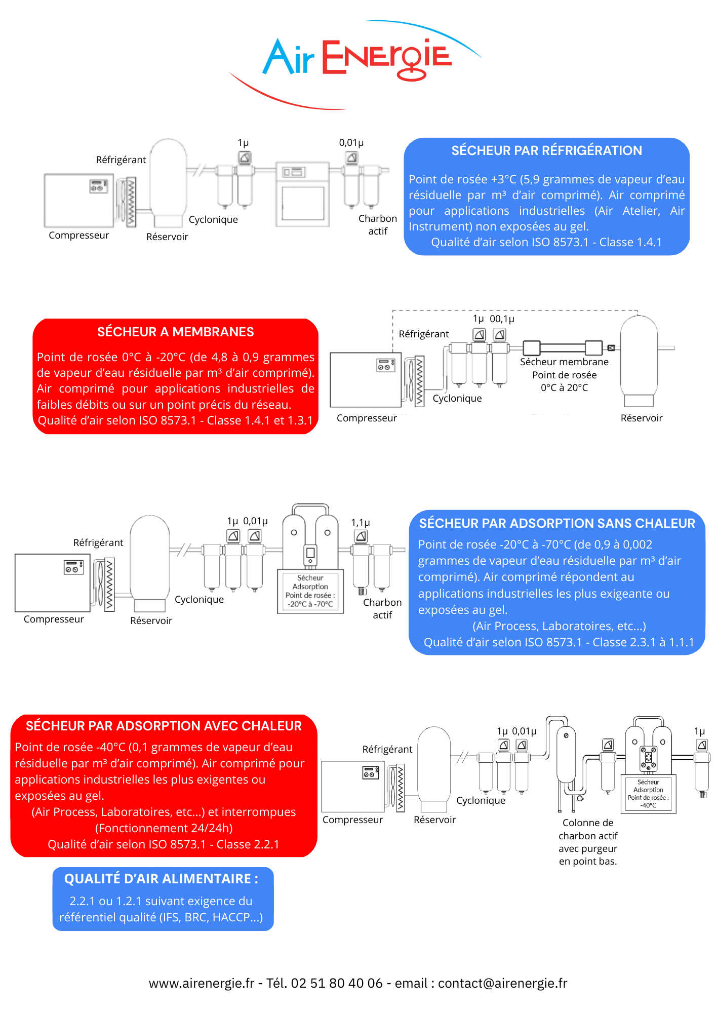 Tableau des caractéristiques des sécheurs à réfrigération